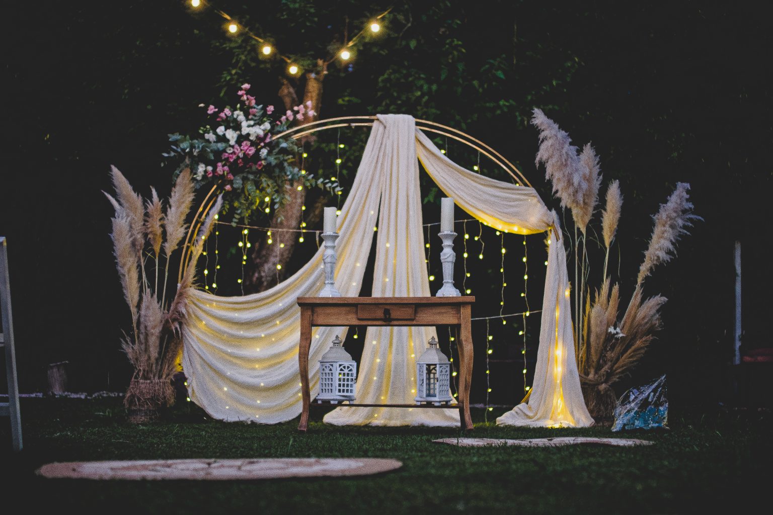 Incluimos: mobiliario, cortina led, sillón princesal, 2 sillas medallón, nombre de los homenajeados, detalles florales en la mesa principal y sector del cofre de la felicidad.