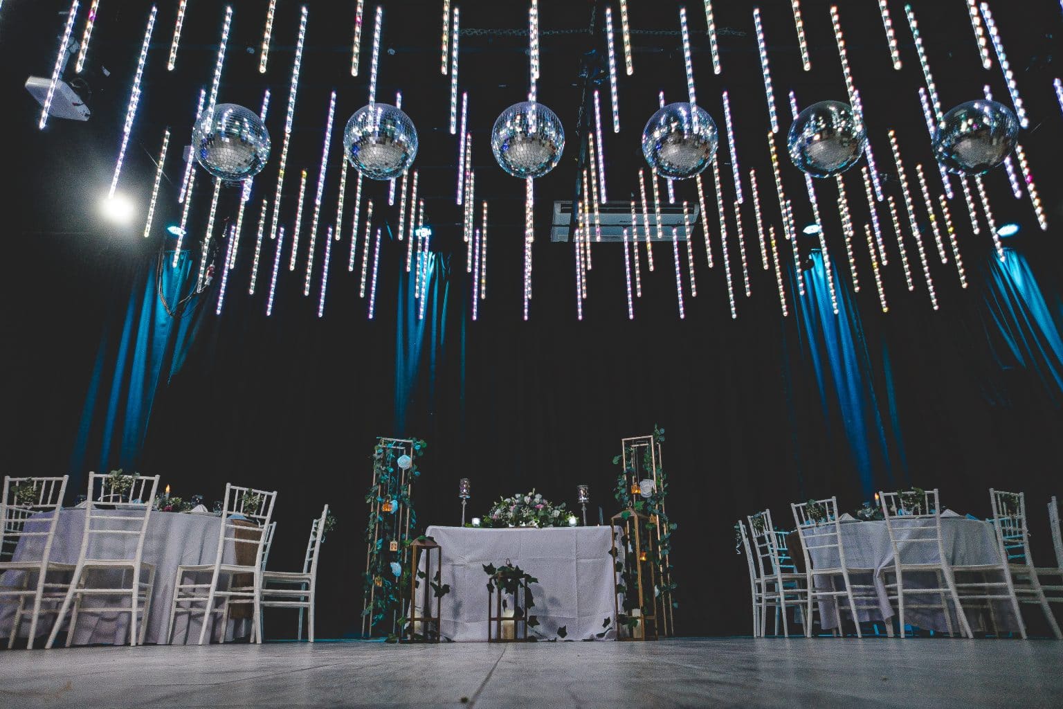 ● Pista de baile equipada con 8 esferas espejadas y 4 cabezales móviles con efectos de luces y colores variados.